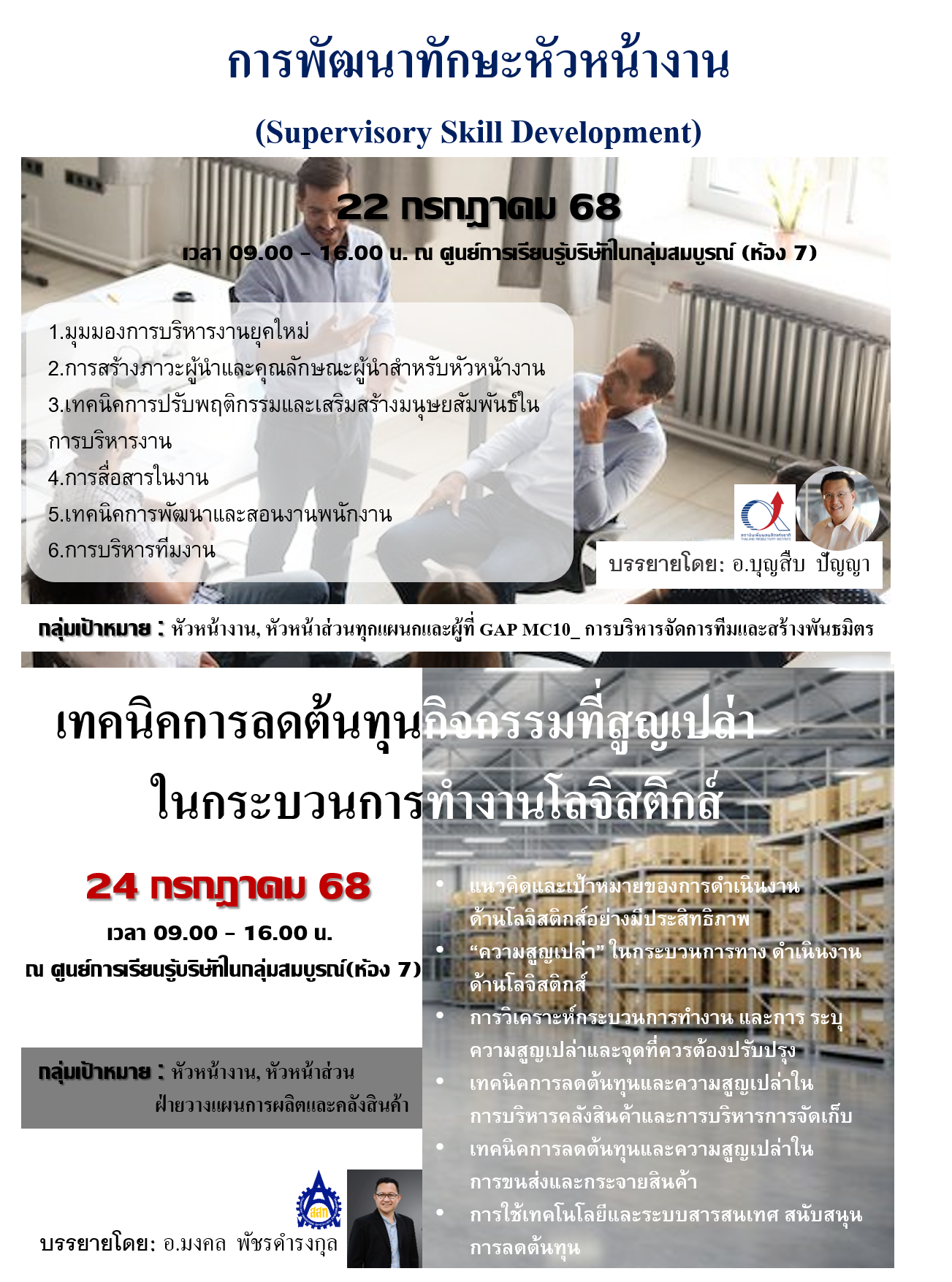 สำหรับเดือน กรกฎาคม 2568 นี้มีหลักสูตรให้ทุกท่านได้พัฒนาทักษะพื้นฐาน และเทคนิคการทำงาน จำนวน 6 หลักสูตร ดังนี้