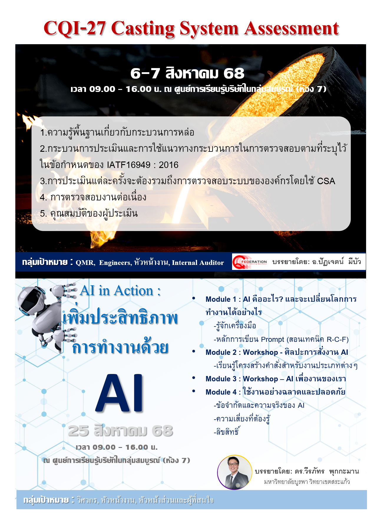 สำหรับเดือน สิงหาคม 2568 นี้มีหลักสูตรให้ทุกท่านได้พัฒนาทักษะพื้นฐาน และเทคนิคการทำงาน จำนวน 8 หลักสูตร ดังนี้