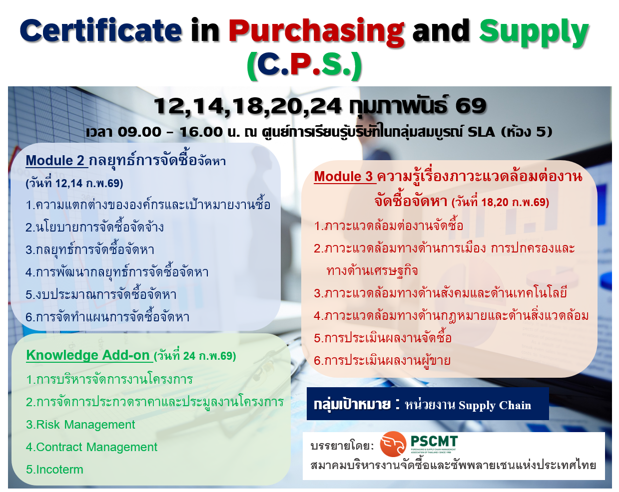 2. หลักสูตร : Certificate in Purchasing and Supply (C.P.S.) Module 2,3