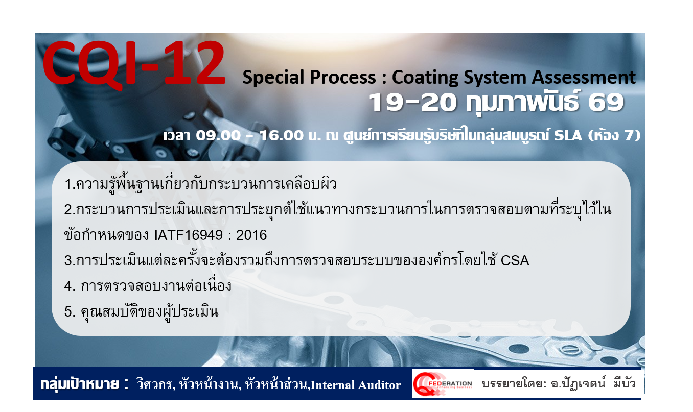 3. หลักสูตร : CQI-12 Special Process : Coating System Assessment